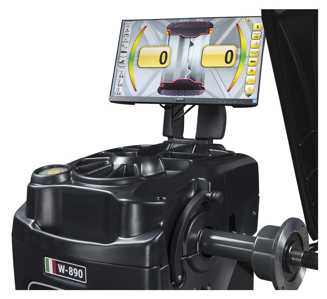 L’equilibratrice w-890 permette di lavorare su qualsiasi cerchio auto, moto suve e van con una larghezza del pneumatico fino a 590mm e un diametro massimo di 1120mm