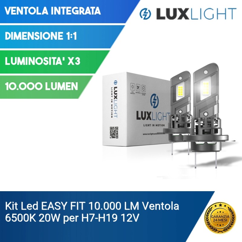 LUMINOSITÀ ELEVATA 10.000 LUMEN: Questo KIT LED per H7 – Hh19 offre una LUMINOSITÀ straordinaria di 10.000 LUMEN, garantendo una visione chiara e dettagliata della strada o dell’ambiente circostante. Con una temperatura colore di 6500K, la luce emessa è simile alla luce del giorno, offrendo una visibilità superiore in condizioni di guida diurne e notturne.