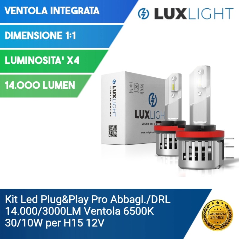Kit Led Plug&Play Pro Abbagl./DRL 14.000/3000LM Ventola 6500K 30/10W per H15 12V