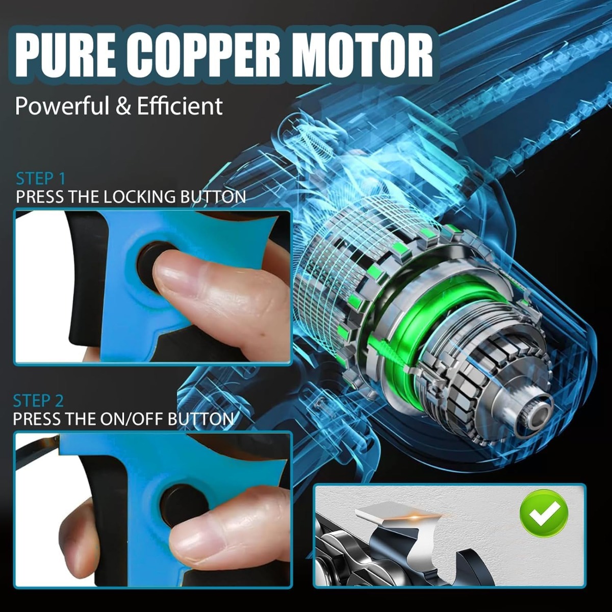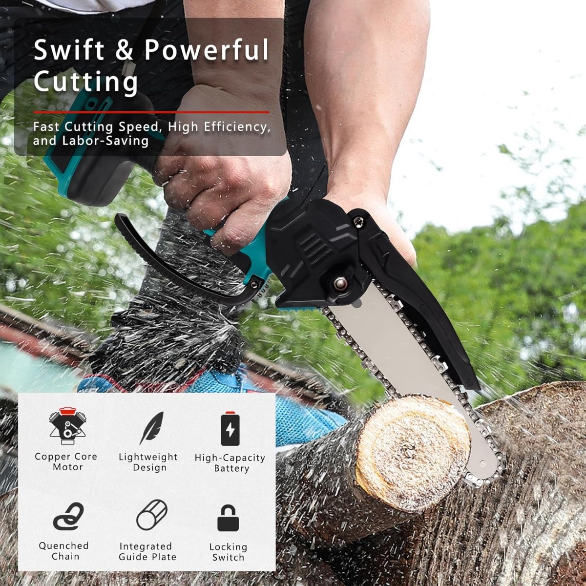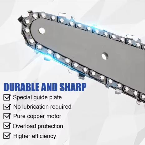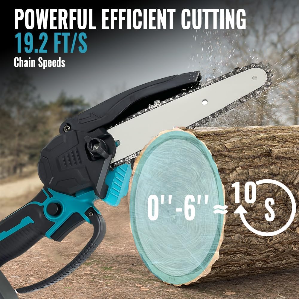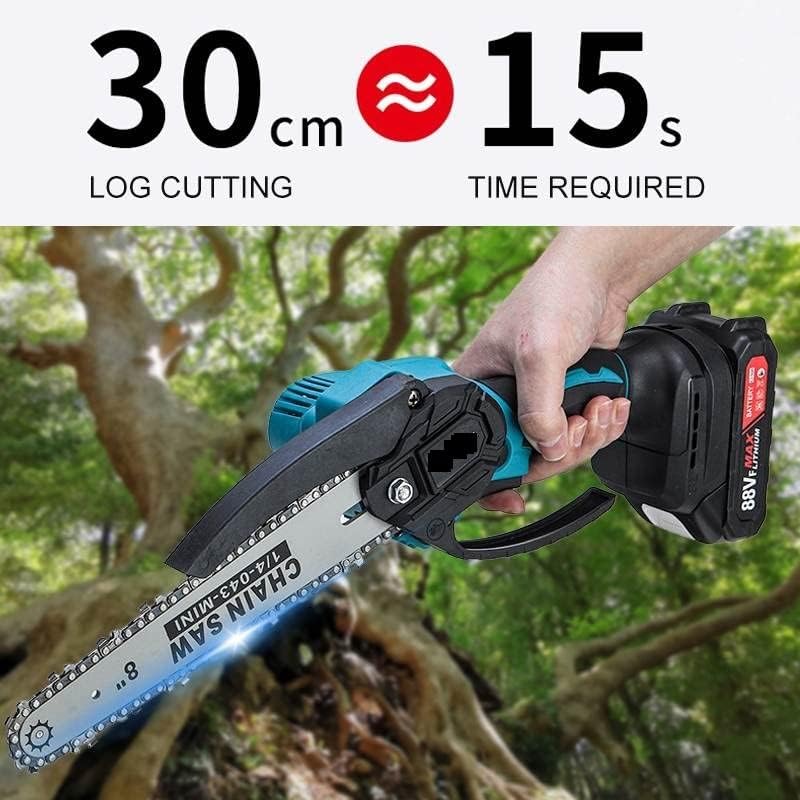 Scopri la potenza e la praticità della nostra Mini Motosega, l’alleato perfetto per tagliare il legno, potare alberi e svolgere lavori di giardinaggio. Con un design compatto e leggero, questa motosega è facile da maneggiare e offre prestazioni potenti grazie alle due batterie da 88W, garantendo un’autonomia di 20-30 minuti per ogni carica. Offre due barre intercambiabili da 6 e 8 pollici che ti permette di adattare la sega alle tue esigenze, rendendola versatile per ogni tipo di taglio. Sicura, ergonomica e ideale per tutti, inclusi anziani e donne, questa motosega è perfetta per lavori di giardinaggio, potatura o fai-da-te in ambienti residenziali o all’aperto.