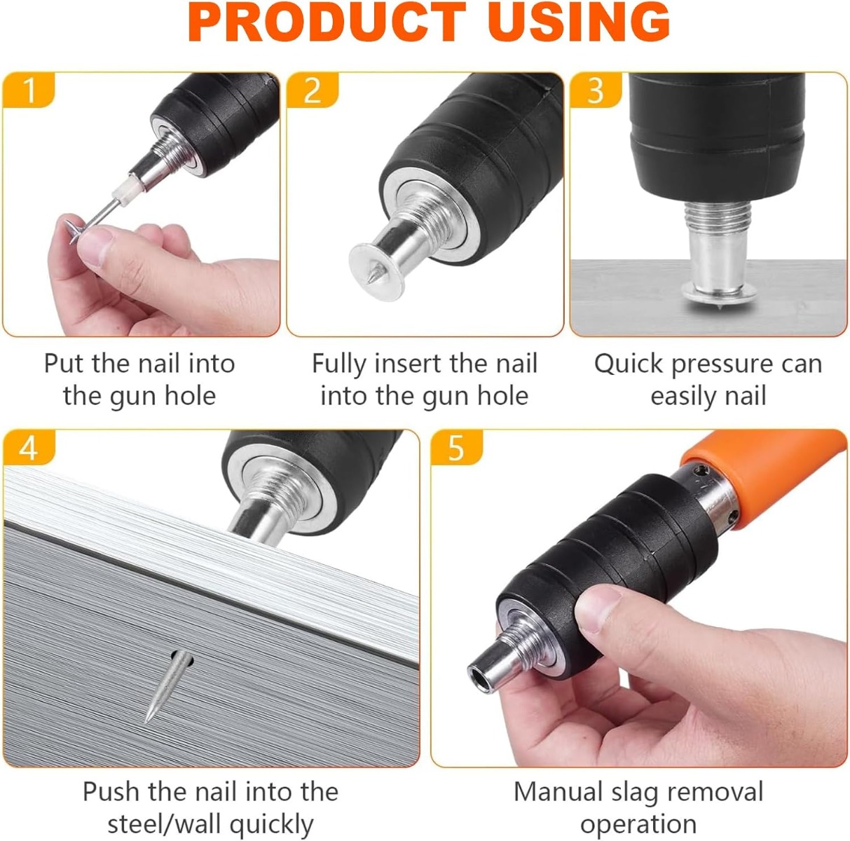 Pistola Manuale Sparachiodi Portatile con Silenziatore Regolabile per Muri e Cemento