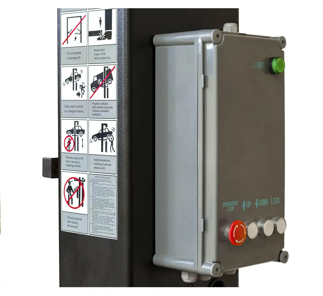 Guarda il pannello: ci sono solo tre pulsanti, uno per sollevare, uno per abbassare e un altro per spingere la cabina nella posizione più bassa. Usare questo sollevatore è estremamente facile.