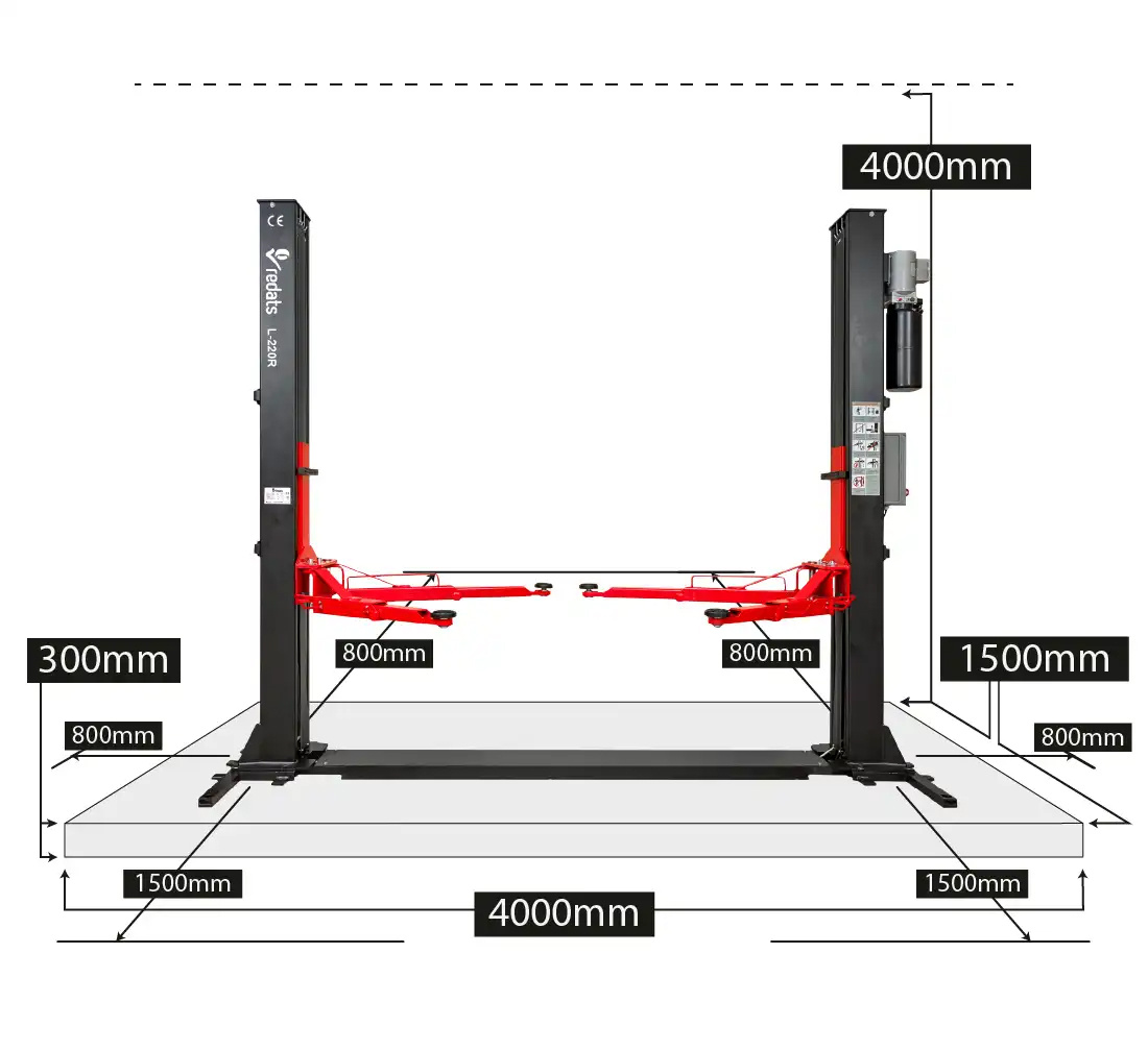 Sollevatore automatico a due colonne 4T REDATS L-220R con base di rinforzo